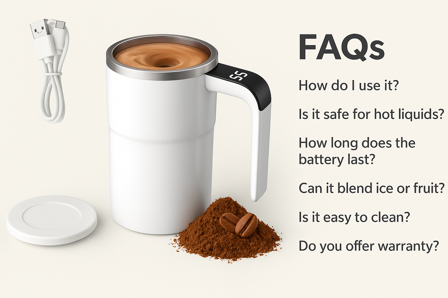 Simply add your drink ingredients, close the lid, and press the power button. The magnetic or blade system will automatically mix your drink in seconds. Each product includes a simple user manual for quick setup.